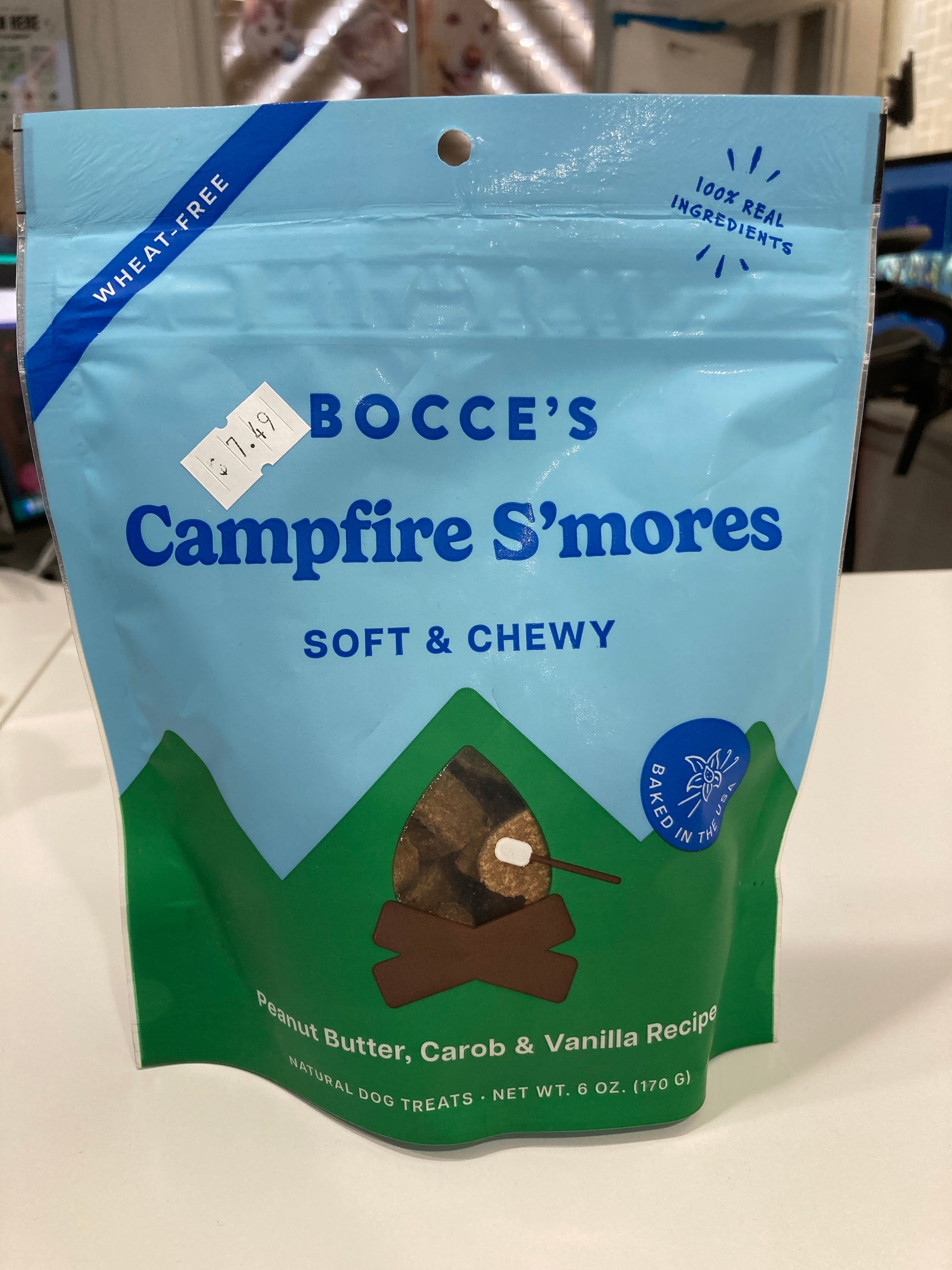 Bocce's Bakery Campfire S'Mores Treats for Dogs, Wheat-Free Everyday Dog Treats, Made with Real Ingredients, Baked in The USA, All-Natural Soft & Chewy Cookies, Peanut Butter, Carob, & Vanilla, 6 oz