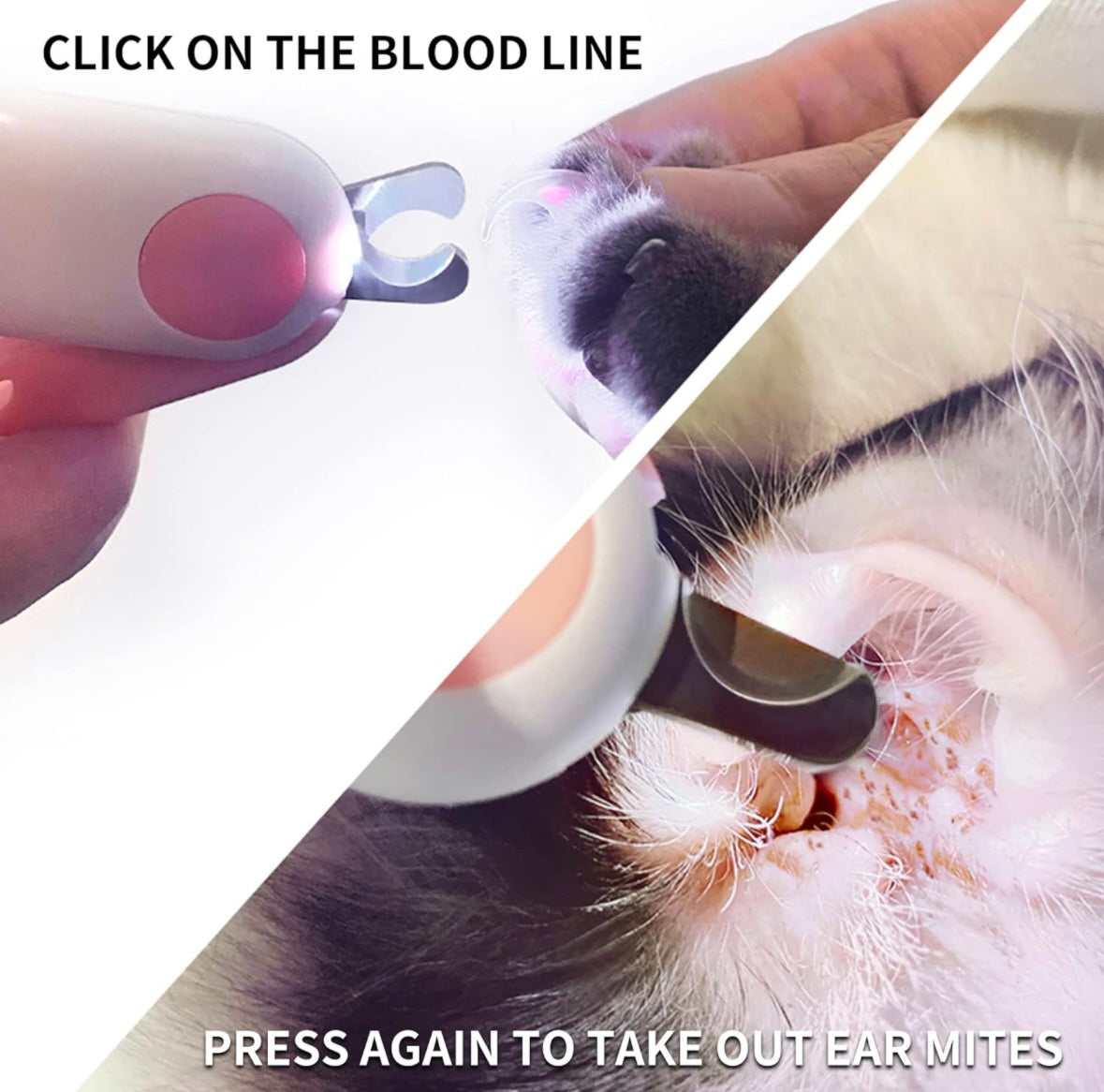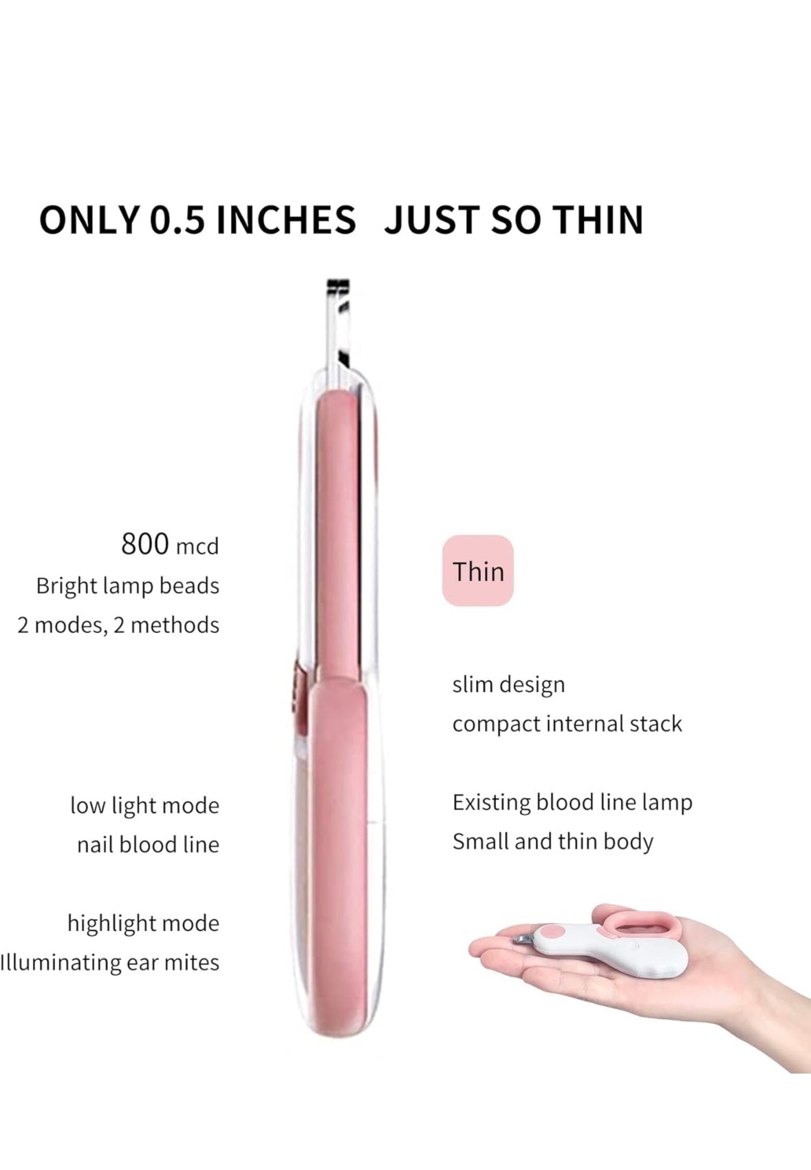 - 【LED Light Design】This unique dog nail clipper has built-in LED light, there are two lighting modes, press once, low light mode, can light up the blood line of pet nails; press twice, high light mode, can light up the dirt in the ears of pets, easy to satisfy your different needs.
