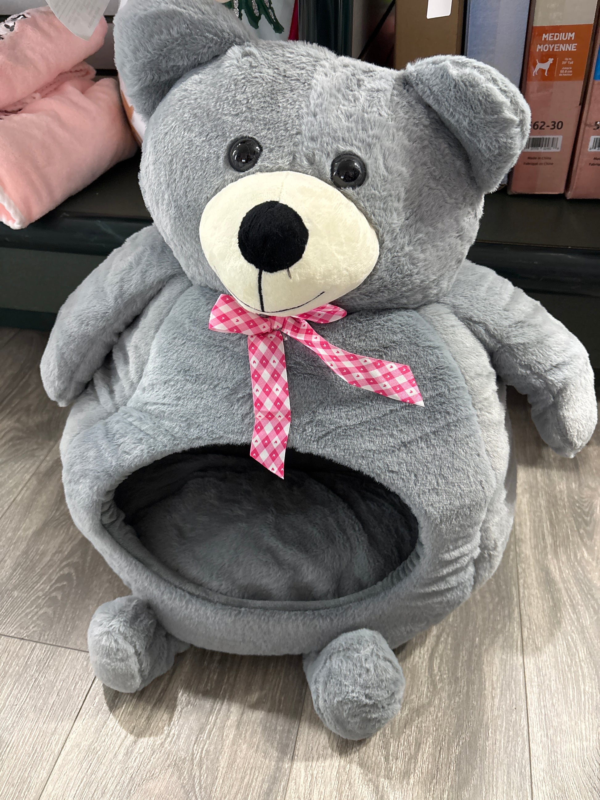 Indoor Dog Bed Cave with Removable Cushion,Cute Pet Plush Warm Tent House,Washable Dog Bed,Cartoon Bear Design Pet Sleeping Bed for Small Middle Cats and Dogs (S, Grey)
