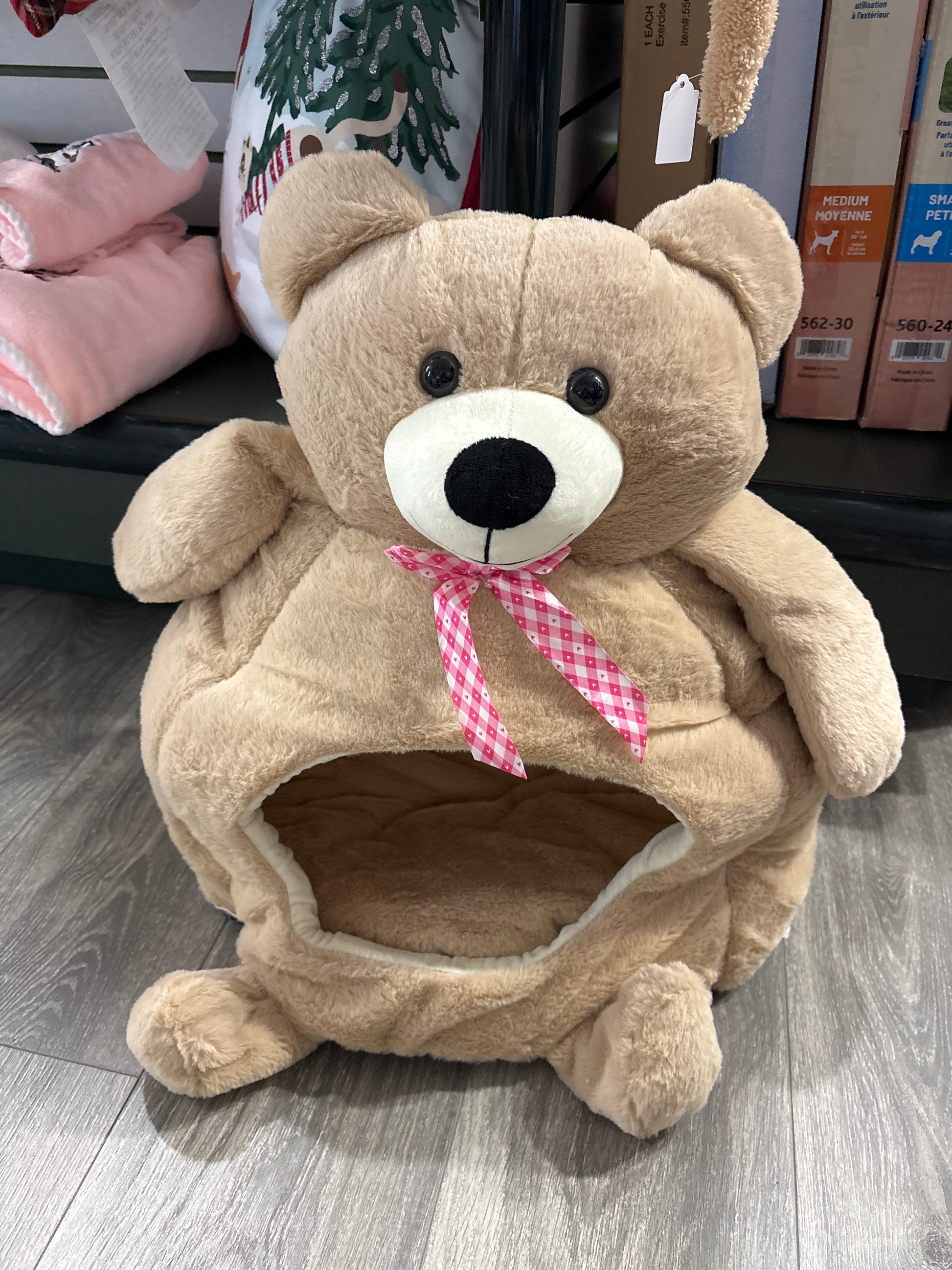 Indoor Dog Bed Cave with Removable Cushion,Cute Pet Plush Warm Tent House,Washable Dog Bed,Cartoon Bear Design Pet Sleeping Bed for Small Middle Cats and Dogs (S, Khaki)