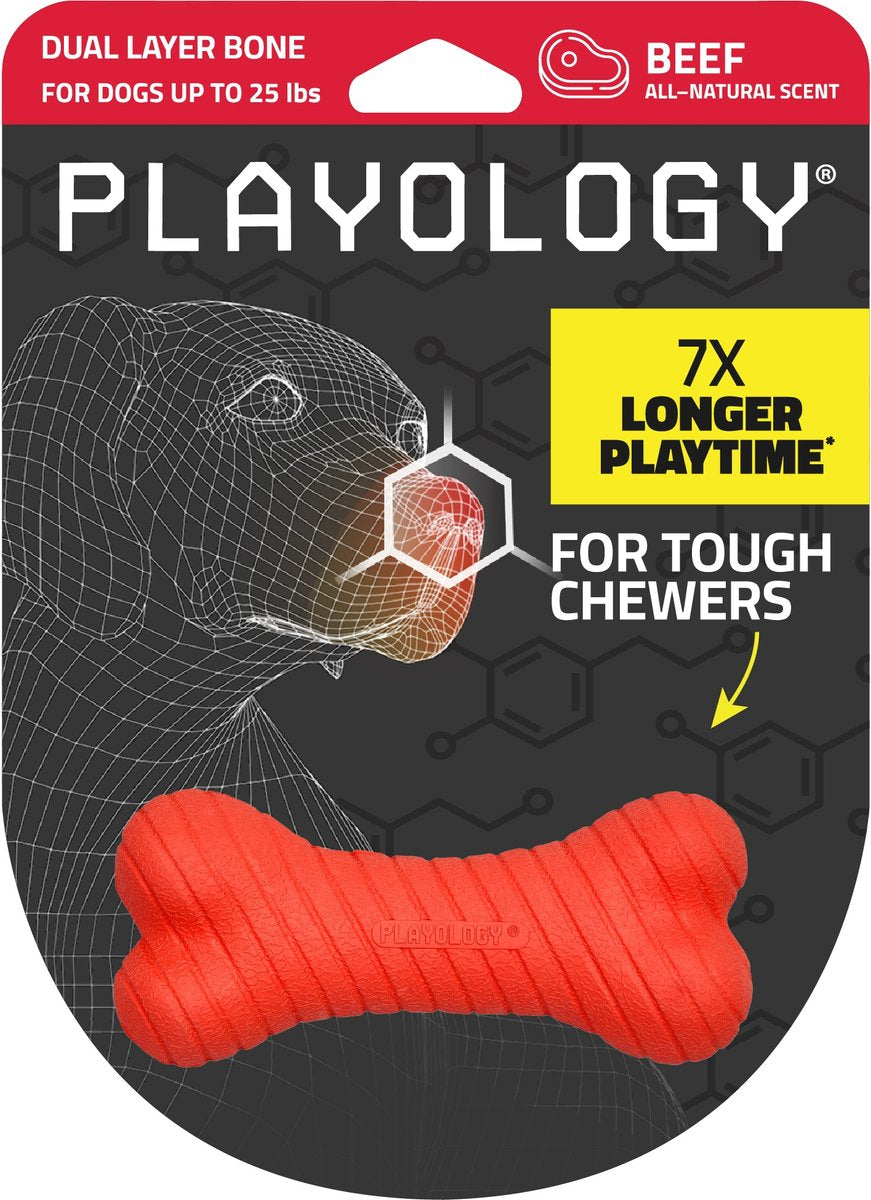 Playology Scented Dual Layer Bone Dog Toy, Small, Beef Scented